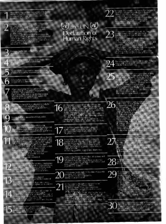 On December 10, 1948 the General Assembly of the United Nations adopted and proclaimed the Universal Declaration of Human Rights the full text of which appears in the following pages. Following this historic act the Assembly called upon all Member countries to publicize the text of the Declaration and "to cause it to be disseminated, displayed, read and expounded principally in schools and other educational institutions, without distinction based on the political status of countries or territories."